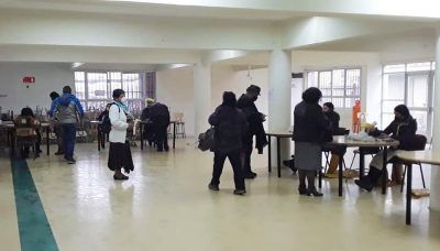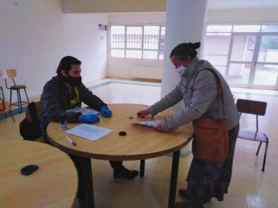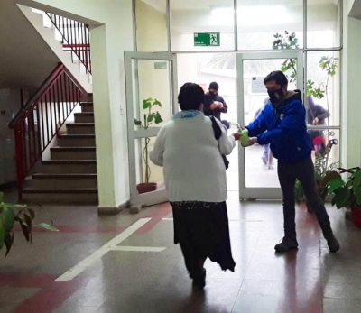 dependencias del Liceo República del Paraguay en donde funcionarios municipales brindaron apoyo en el desplazamiento de los usuarios y en la higiene de manos en el ingreso y salida del local.