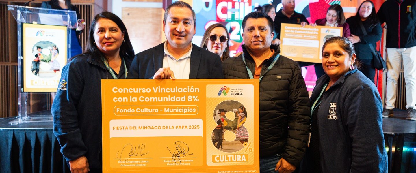 Gran noticia, vecinos. Hemos sido seleccionados como una de las 16 comunas beneficiarias del Concurso Vinculación con la Comunidad 8%, línea de Cultura, del Gobierno Regional de Ñuble.