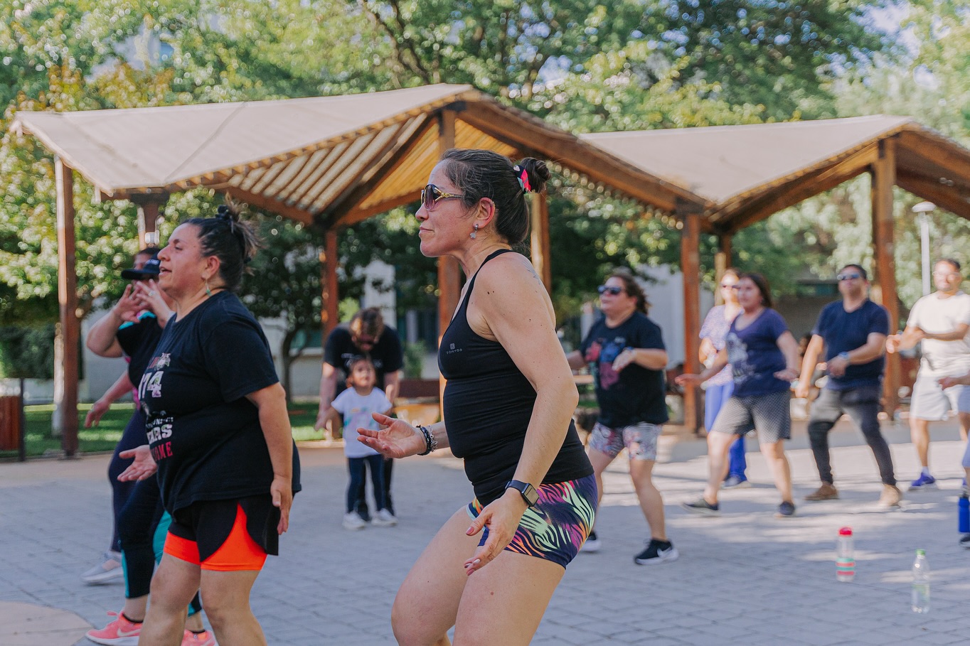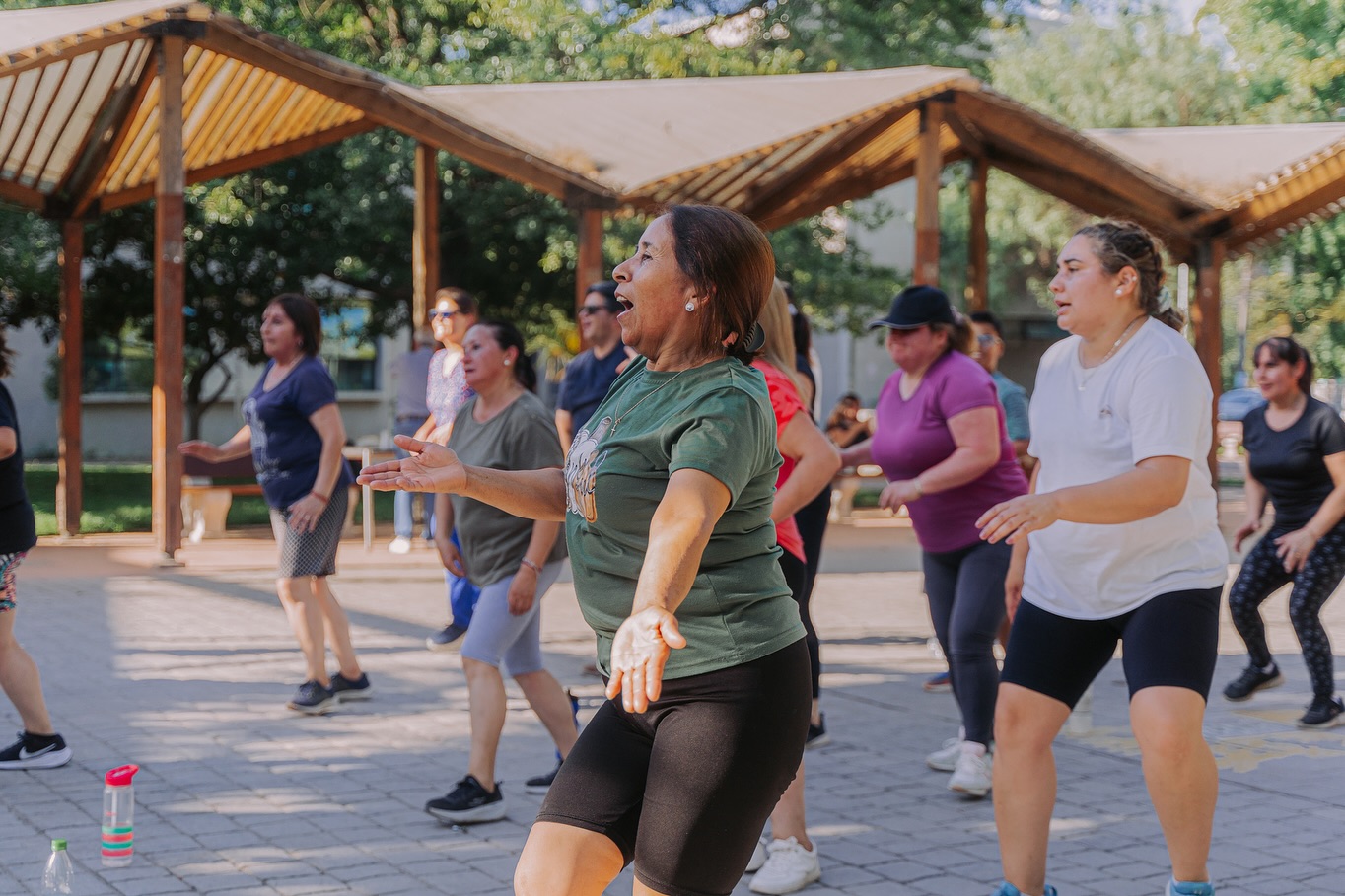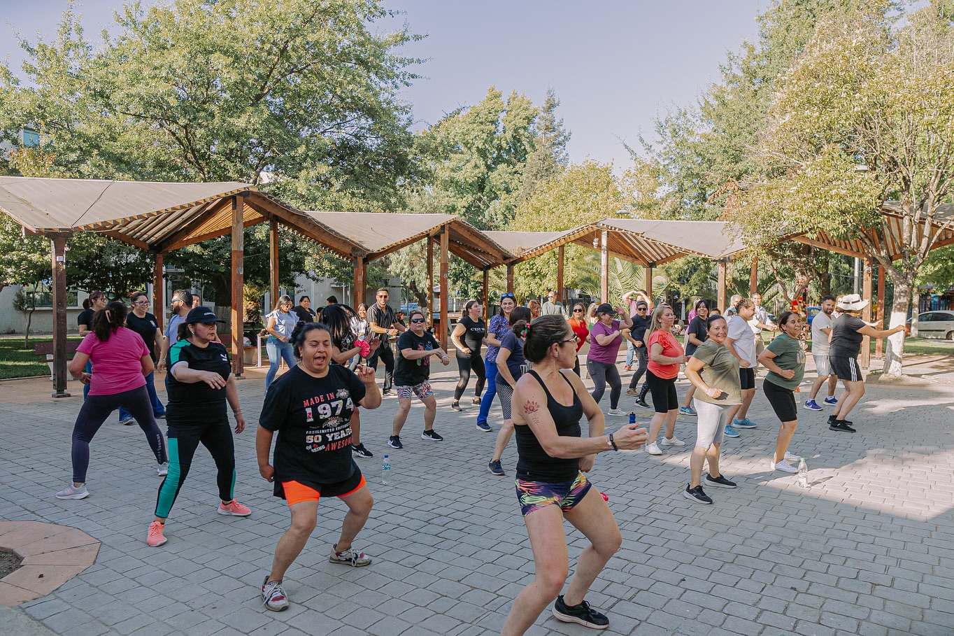 Con la participaciรณn de nuestras vecinas, vecinos, niรฑos y funcionarios municipales, logramos darle aรบn mรกs vida a nuestra plaza en esta entretenida jornada de zumba.