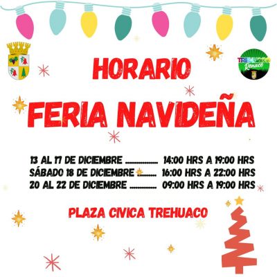 HomepageNoticiasATENCION HORARIO DE FERIA NAVIDEÑA Noticias Slide Ultimas Noticias ATENCION HORARIO DE FERIA NAVIDEÑA Administrador Posted on 06/12/2021 Administrador View all posts Navegación de entradas Previous PostHoy durante el transcurso de la tarde se hizo entrega de lo recaudado en nuestra comuna para la Teletón 2021 Next PostEn estos momentos se realiza la firma del convenios de subvenciones cultura y deporte año 2021. You Might Also Like Noticias 𝐋𝐢𝐜𝐞𝐧𝐜𝐢𝐚𝐭𝐮𝐫𝐚 𝐄𝐬𝐜𝐮𝐞𝐥𝐚 𝐞𝐬𝐩𝐞𝐜𝐢𝐚𝐥 𝐝𝐞 𝐥𝐞𝐧𝐠𝐮𝐚𝐣𝐞 𝐬𝐨𝐧𝐫𝐫𝐢𝐬𝐚𝐬 Administrador 11/02/2025 Noticias 𝐅𝐢𝐫𝐦𝐚 𝐝𝐞 𝐂𝐨𝐧𝐯𝐞𝐧𝐢𝐨 𝐓𝐄𝐂𝐇𝐎-𝐂𝐡𝐢𝐥𝐞 𝐲 𝐌𝐮𝐧𝐢𝐜𝐢𝐩𝐚𝐥𝐢𝐝𝐚𝐝 𝐝𝐞 𝐓𝐫𝐞𝐡𝐮𝐚𝐜𝐨 Administrador 21/10/2025 Noticias 𝗧𝗥𝗘𝗛𝗨𝗔𝗖𝗢 𝗣𝗔𝗥𝗧𝗜𝗖𝗜𝗣𝗔 𝗘𝗡 𝗖𝗨𝗘𝗡𝗧𝗔 𝗣𝗨́𝗕𝗟𝗜𝗖𝗔 𝗗𝗘 𝗚𝗢𝗕𝗜𝗘𝗥𝗡𝗢 𝗥𝗘𝗚𝗜𝗢𝗡𝗔𝗟 Administrador 13/06/2025 Noticias 𝗖𝗢𝗠𝗨𝗡𝗔 𝗠𝗔́𝗦 𝗦𝗘𝗚𝗨𝗥𝗔 𝗬 𝗧𝗥𝗔𝗡𝗤𝗨𝗜𝗟𝗔, 𝗨𝗡𝗔 𝗥𝗘𝗔𝗟𝗜𝗗𝗔𝗗 𝗚𝗥𝗔𝗖𝗜𝗔𝗦 𝗔𝗟 𝗧𝗥𝗔𝗕𝗔𝗝𝗢 𝗘𝗡 𝗘𝗤𝗨𝗜𝗣𝗢 Administrador 13/06/2025