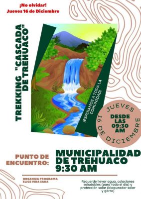 El programa elige Vida Sana de nuestra Comuna tiene el agrado de invitarlos al “Trekking a la cascada” el próximo jueves 16 de diciembre!