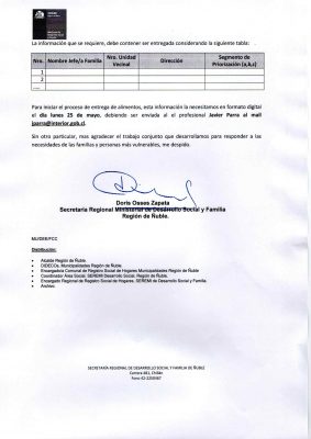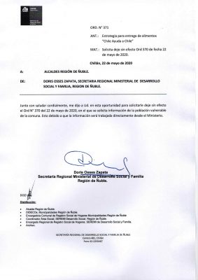 3. Que a las 13.00 HRS de hoy sábado se recibe el ordinario N°371 donde piden dejar sin efecto la información solicitada el día anterior ya que la información será trabajada directamente por el Ministerio de Desarrollo Social y Familia.
